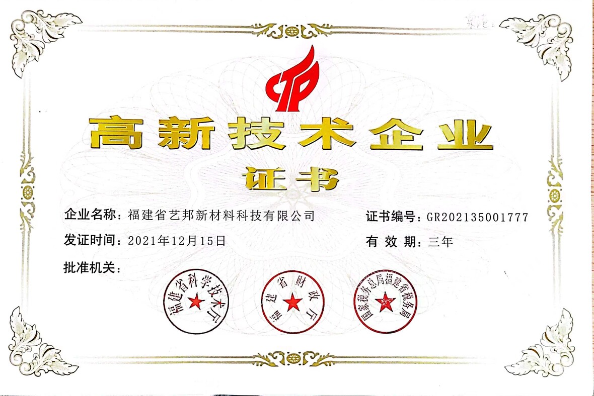 荣耀证明实力,品质赢得口碑——艺邦新材料荣获高新技术企业证书